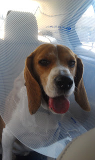 Sadly I have been regulated to a cone. More on that later... I have to go find somewhere to stand where this silly thing won't scrape the floors or the walls because that scares me....